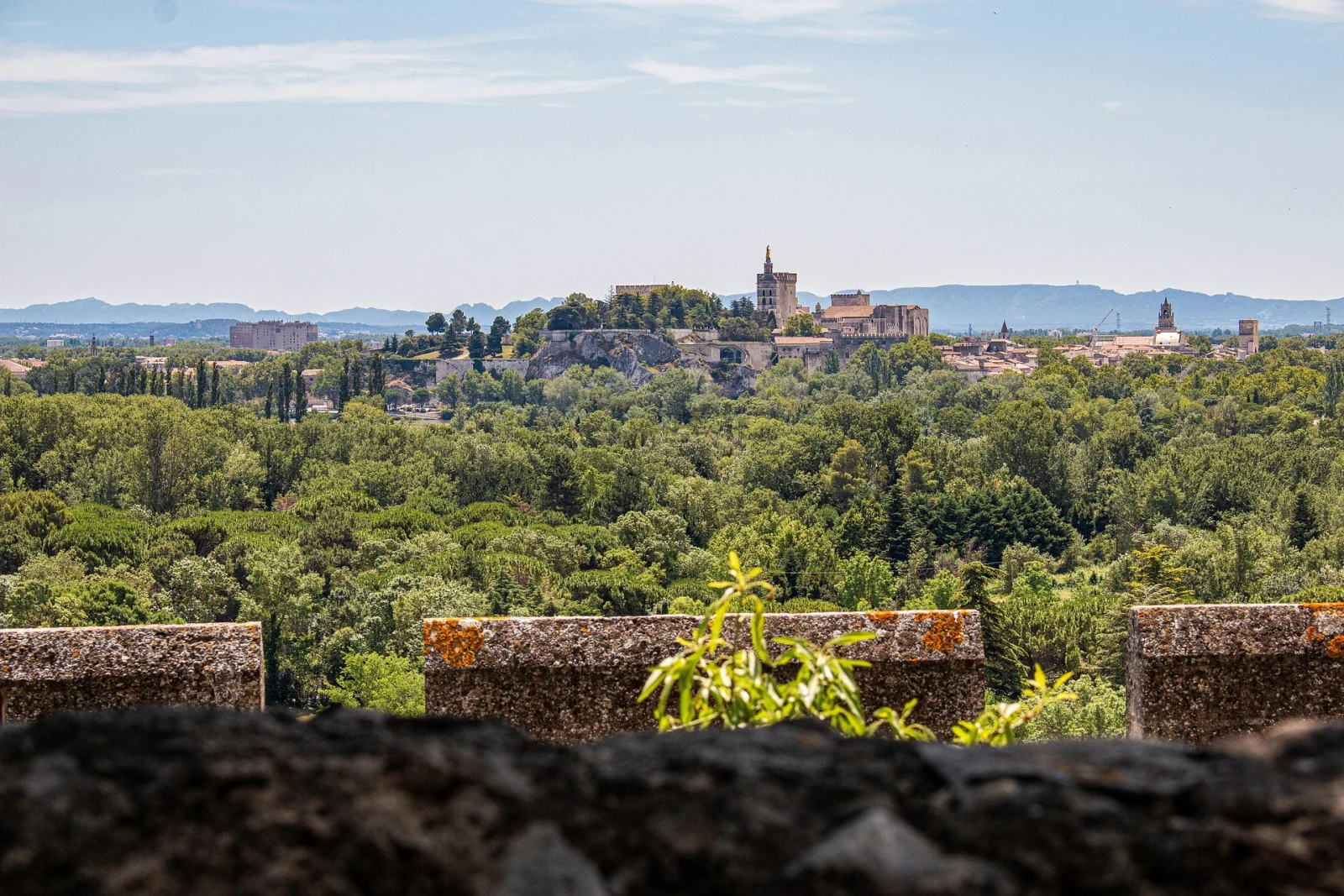 Nous vous recommandons de prendre le temps de visiter le Palais des Papes (inscrit au patrimoine mondial de l’Unesco) ainsi que le Pont Saint-Bénezet (plus communément appelé Pont d’Avignon). Si vous vous rendez au sommet du Rocher des Doms, vous apercevrez au premier plan les remparts qui entourent la ville et plus au loin, au-delà du Rhône, le Fort Saint-André sur le Mont Andaon qui domine Villeneuve-lès-Avignon.
